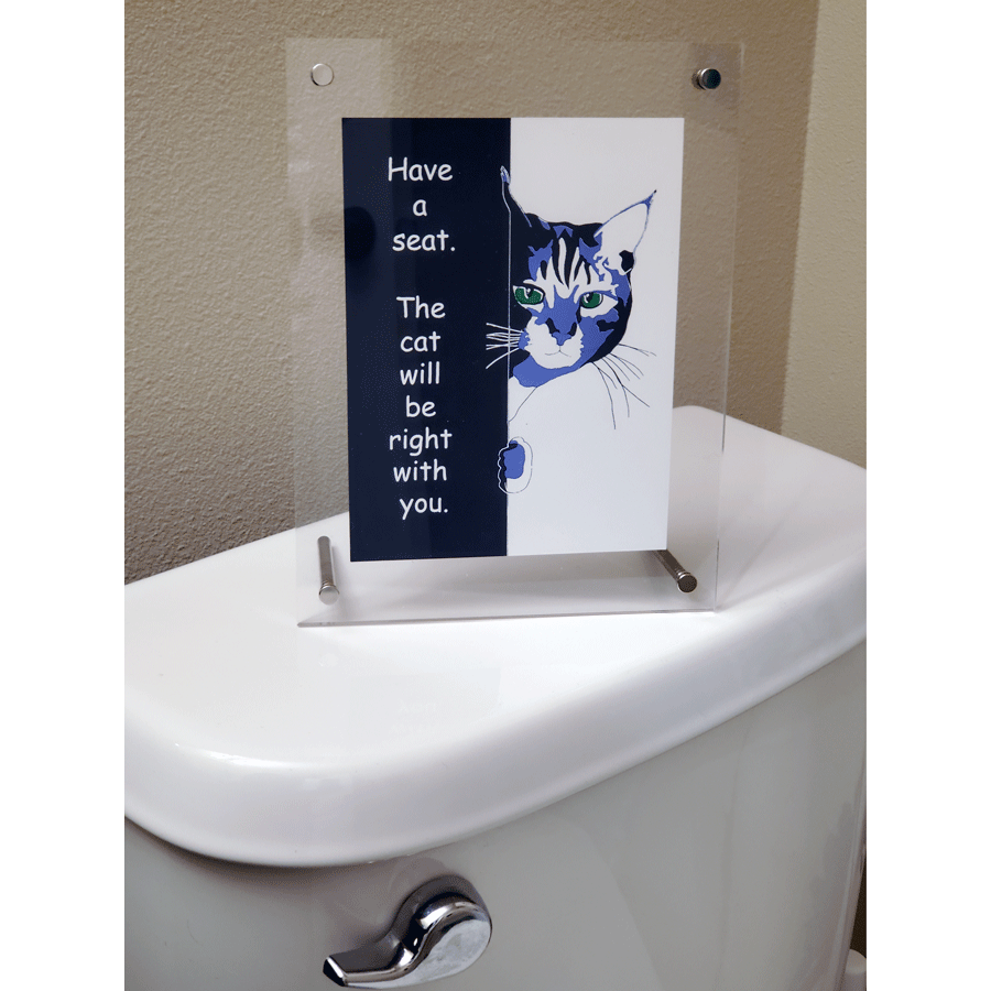 I love my cat and I LOVE this sign! She always has to be in the bathroom with me! This sign captures the behavior perfectly! The rich bright colors are perfect!