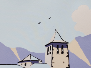 Screen Print paper size 11×14 inches. Colors are red, black and white, on 250 gsm off-white fine-art paper. 2025.